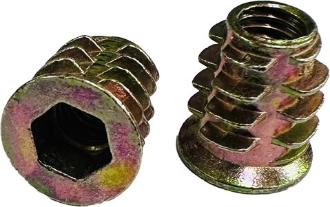 Threaded fasteners embedded into wood, plastic, or metal, insert nuts create strong, reusable threads for bolts or screws, enhancing durability and stability in furniture, machinery, and construction applications.